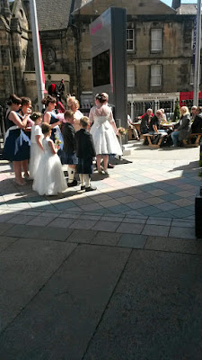 We were walking into the festival center building and somehow were in line with this wedding. The bride had the cutest blue petticoat on under her dress!